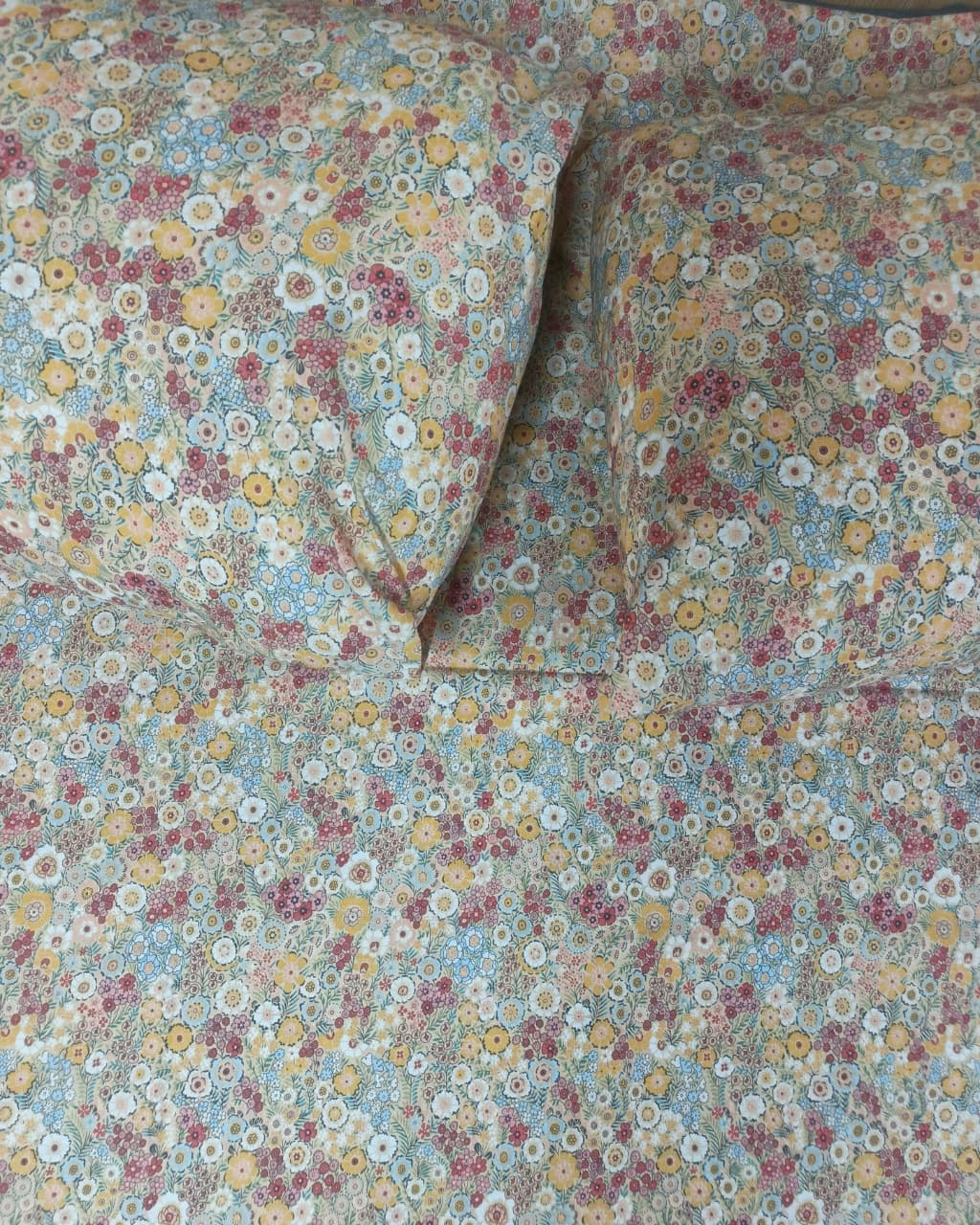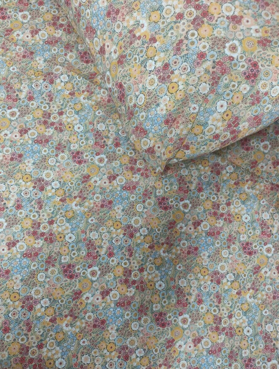 Add a touch of timeless beauty to your bedroom with our Vintage Blossom Garden Cotton Bedsheet. Featuring a delicate all-over floral print in soft pastel shades of yellow, blue, pink, and white, this design brings warmth, freshness, and a calm garden feel to your space.